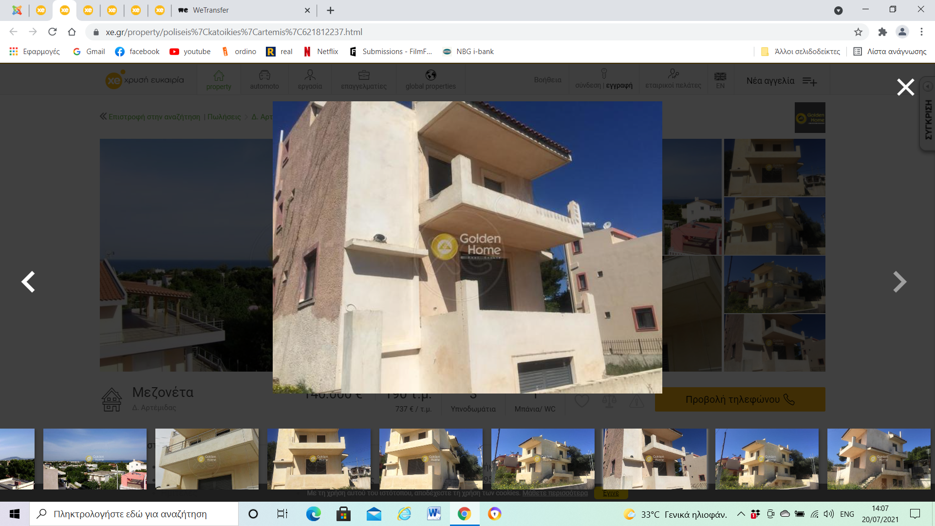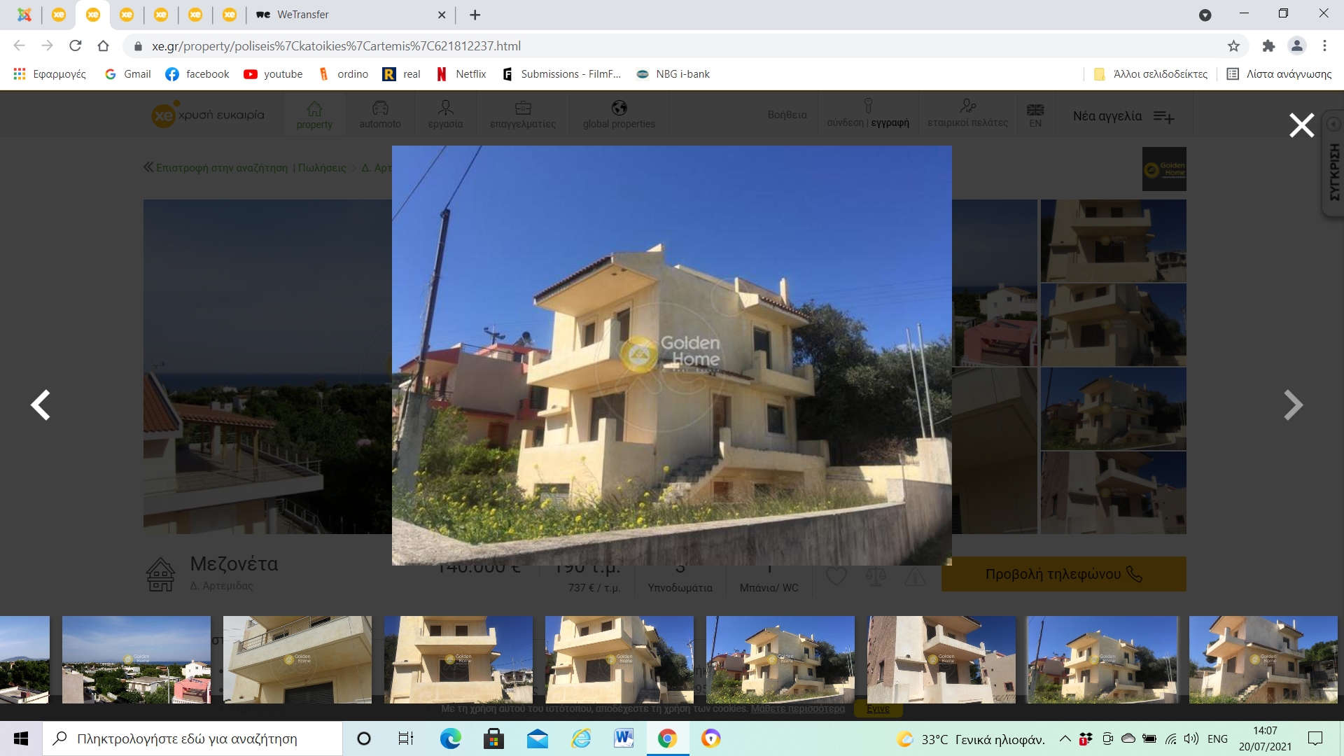 À seulement 20 min de l'aéroport et a 33 km du centre d'Athènes, maison avec jardin de 295 m2, au bord de la mer. Superbe vue sur la mer depuis sa terrasse, elle dispose de 3 chambres, 2 salles de bain, porte blindée, chauffe-eau solaire, débarras.