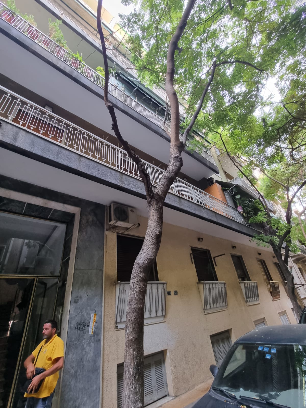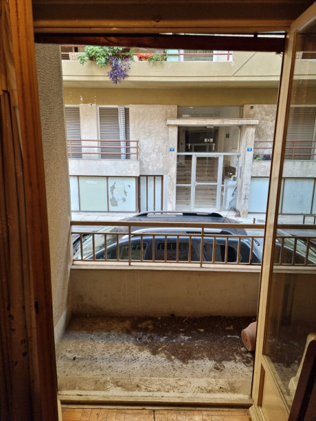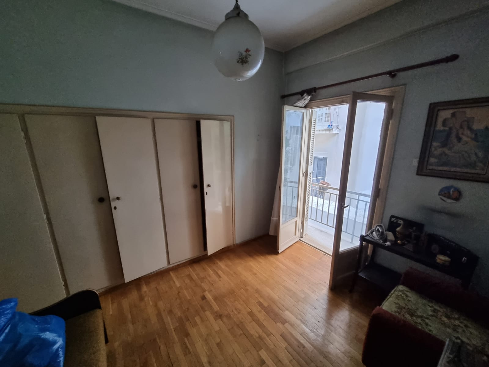 Appartement de 46 m2, en rez-de-chaussée surélevé dans le quartier de Victoria, en plein centre d'Athènes.  Ouvert sur deux faces, il possède un balcon de chaque côté.