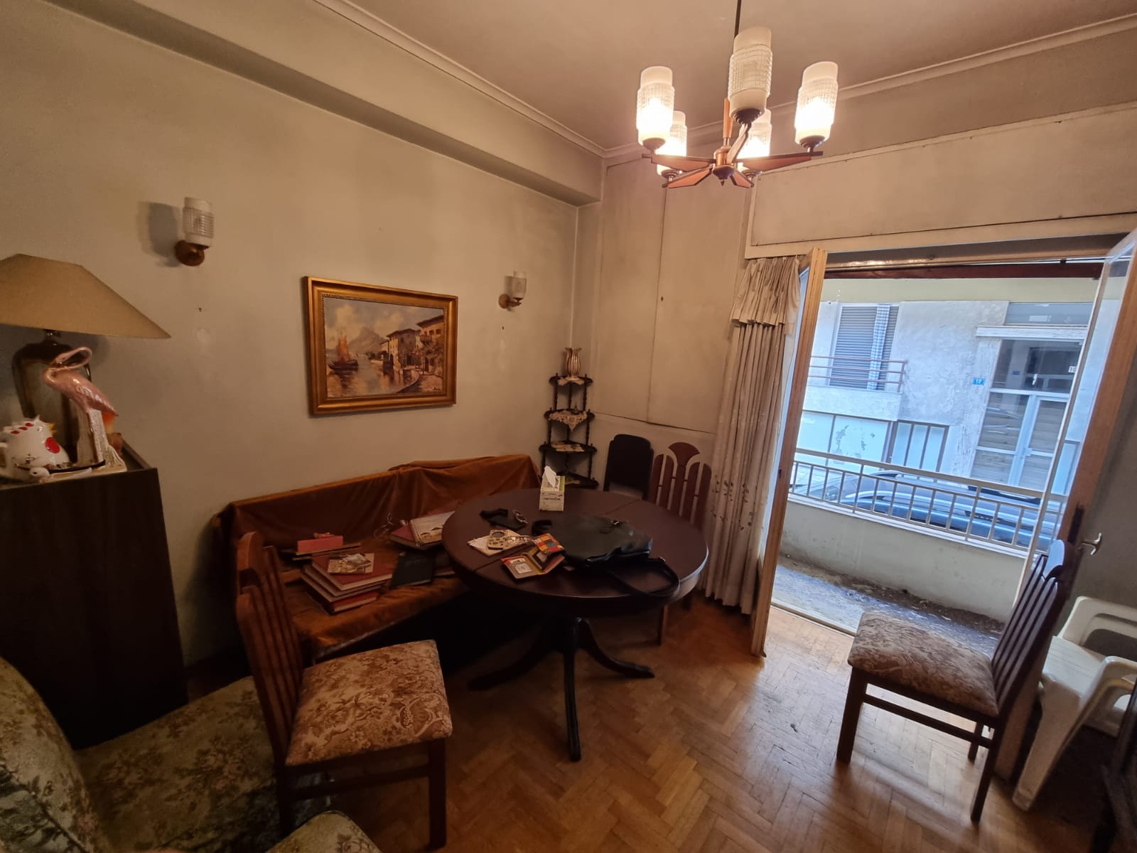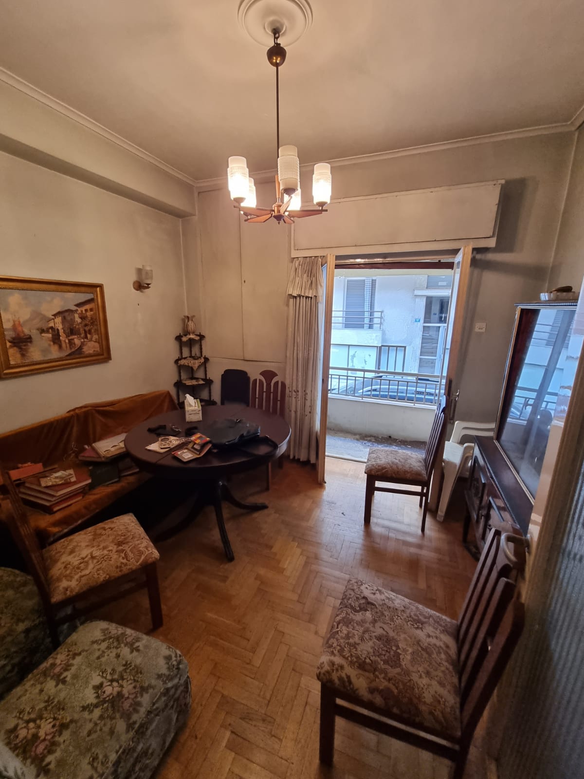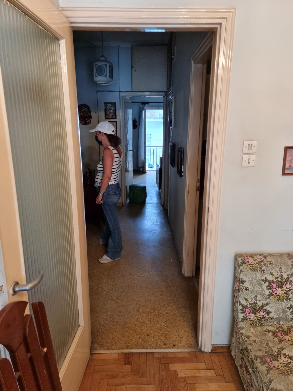 Appartement de 46 m2, en rez-de-chaussée surélevé dans le quartier de Victoria, en plein centre d'Athènes.  Ouvert sur deux faces, il possède un balcon de chaque côté.