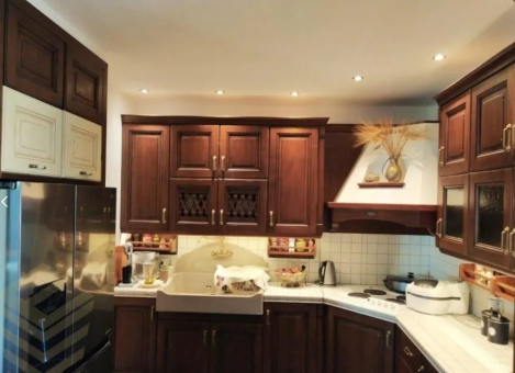 Avec fenêtres isolantes, chauffe-eau solaire, volets électriques, sol en granite et pierre de Karystos, ameublement de la cuisine en bois, porte blindée, système de sécurite avec signal d'alarme et caméras, garage extérieur.