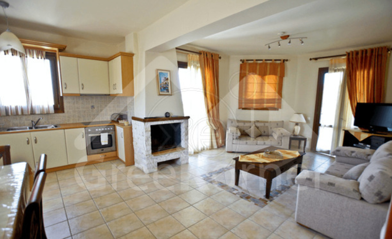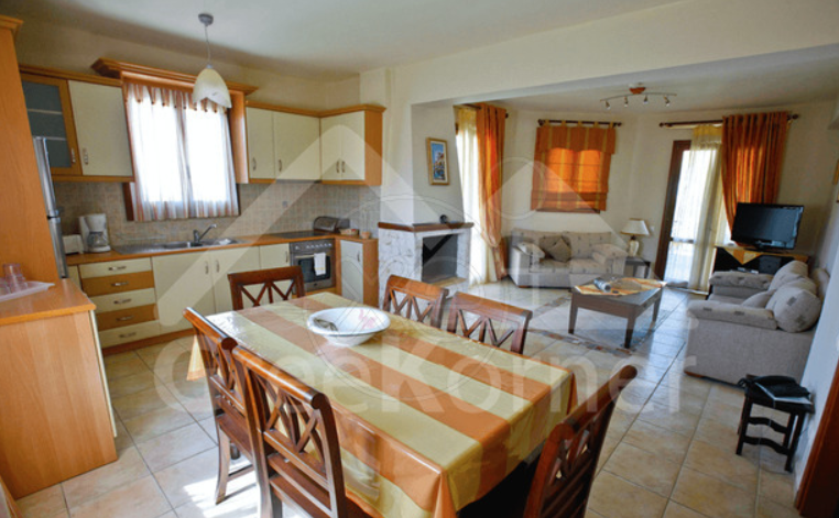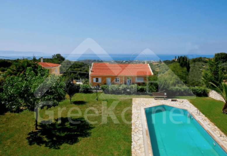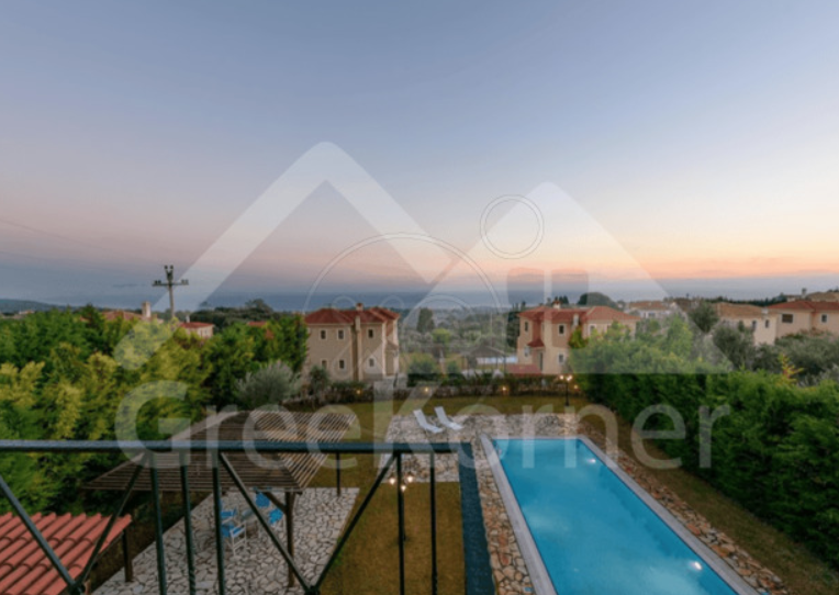 Très jolie maison de 180 m2 sur un terrain de 1000 m2, avec jardin très soigné et piscine, et avec une magnifique vue sur la mer. À 3 km de l'aéroport et à 8 km de la ville d'Argostoli.