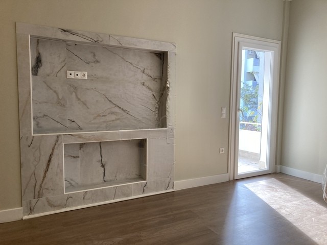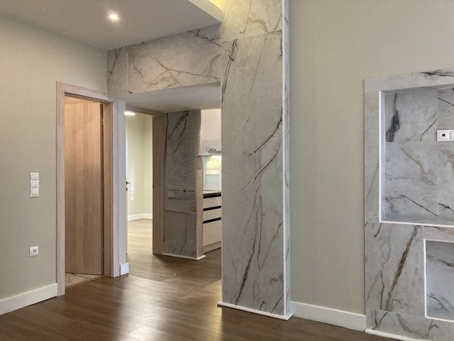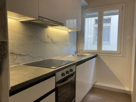 Idéalement situé, à 3’de la plage Éden à Palio Faliro, cet appartement  de 71m² se trouve au 1er étage sur cour et est complètement rénové.