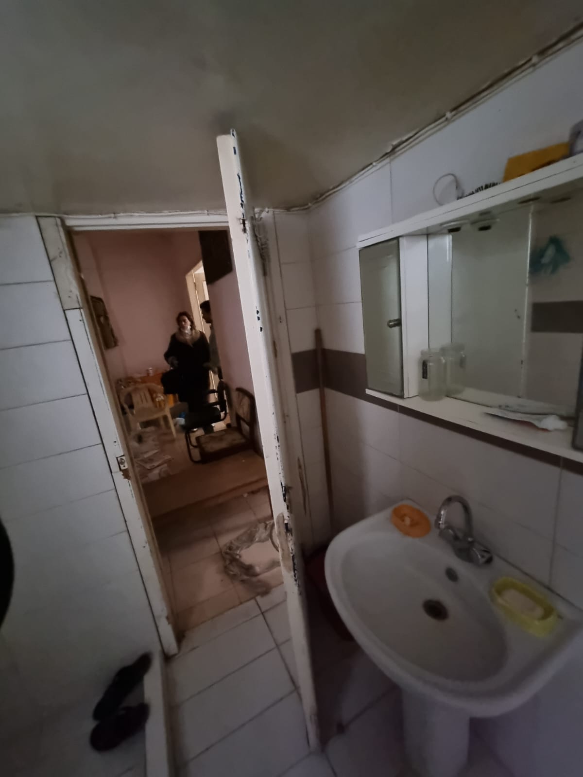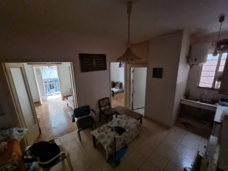 Appartement de 51m² à rénover au rez-de-chaussée suréléevé avec vue sur cour. Il comprend une pièce à vivre avec cuisine, deux chambres et une salle de bain.