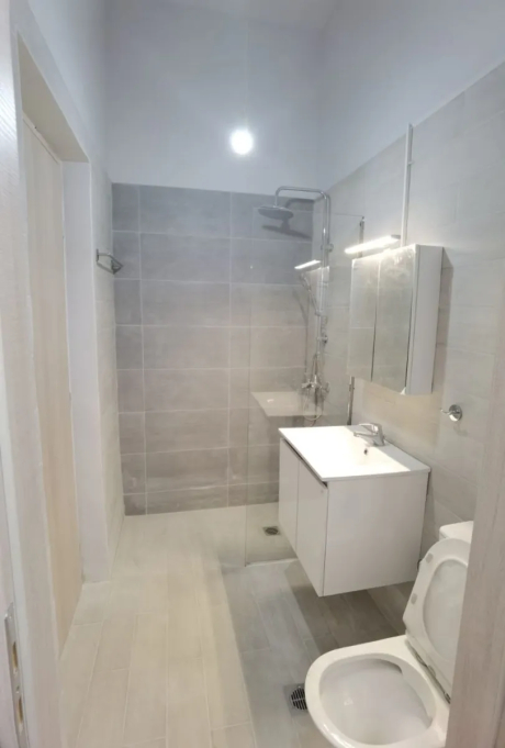 Apartment 3 is located on the quiet street of the first floor. It has a large living room/kitchen, a bedroom, and a bathroom.